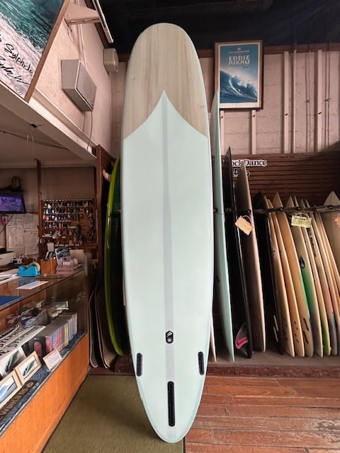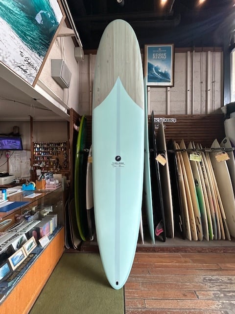 Hull Riderの名の通り、緩やかなボトムのハル(船体)構造、ノーズライディング時のリフト増の為にノーズに入った水滴型のコンケーブ、ターンの為に抑えられたスイングウェイト、これらがこのボードの特徴です。低めのエントリーロッカーが意味するのはパドルパワーの最大化であり、後方からでも波に滑り込む事を可能にします。下がったレールとハードなエッジがスピードとパフォーマンス性を向上させ、レールに乗ったスムースな滑りを可能にさせています。